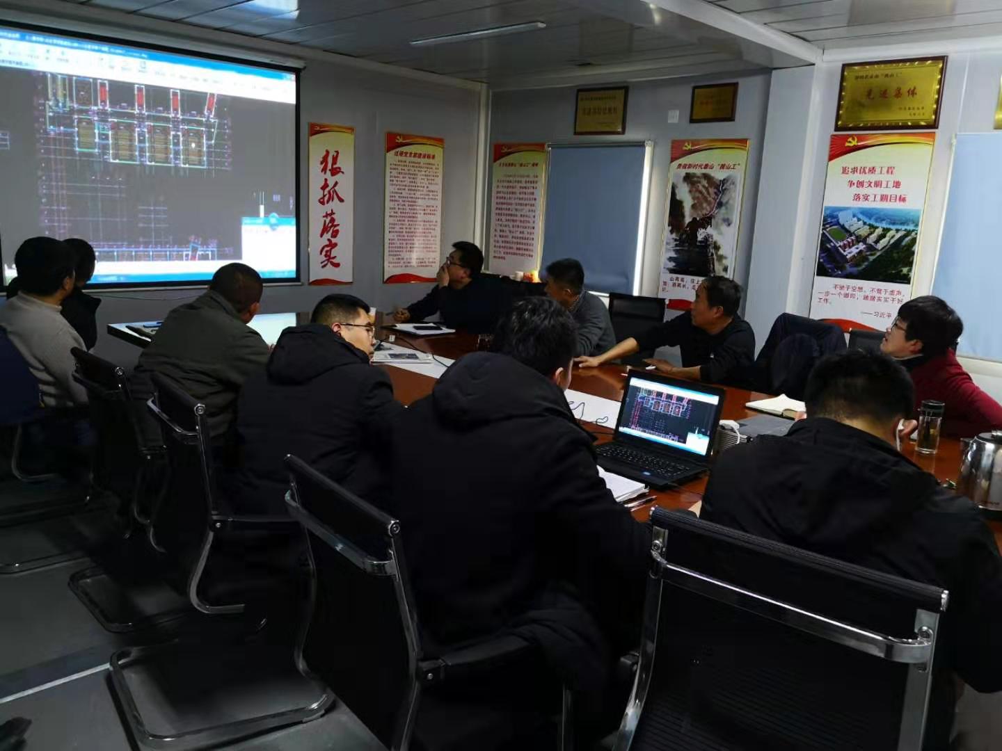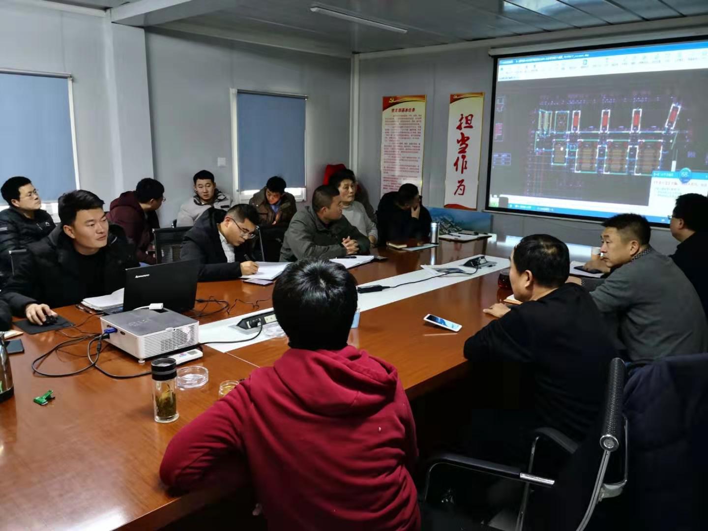 林建安科长首先对经管片区各部门设备、设施配置进展情况进行介绍,就多媒体教室投影幕布的尺寸、电子班牌、全屏LED显示屏尺寸等问题与网信中心殷桂堂副处长进行一一对接,就供应商带来的30Kw配电柜电源接入问题与网信中心、泰建公司进行充分沟通对接。